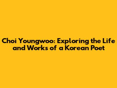 Choi Youngwoo: Exploring The Life And Works Of A Korean Poet