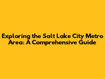 Exploring The Salt Lake City Metro Area: A Comprehensive Guide