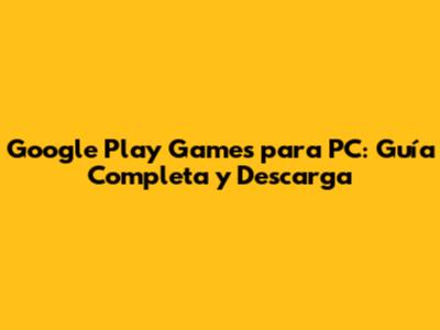 Guía Paso a Paso: Cómo Descargar e Instalar Google Play Games para PC