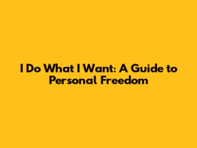 I Do What I Want: A Guide To Personal Freedom
