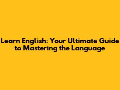 Learn English: Your Guide To Mastering The Language