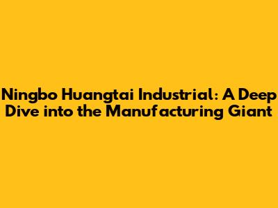 Ningbo Huangtai Industrial: A Deep Dive Into The Manufacturing Giant
