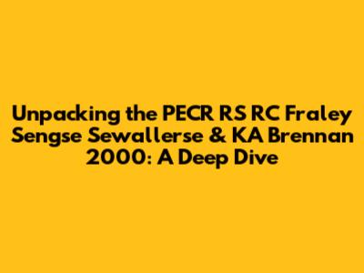 Hey guys! Today, we're diving deep into something that might sound a bit technical at first glance: the PECR RS RC Fraley Sengse Sewallerse & KA Brennan 2000. Now, I know what you're thinking – "What on earth is that?" But stick with me, because understanding this isn't just for the super-geeks among us. It touches on important aspects that can affect how we interact with technology, data, and even our privacy. Think of it as a key piece of a puzzle that helps us navigate the digital world more safely and effectively. We'll break down each part of this seemingly complex title so you can get a clear picture of what it all means and why it might matter to you. It’s all about demystifying the jargon and making it accessible, because knowledge is power, right? Let's get started on unraveling this mystery together.