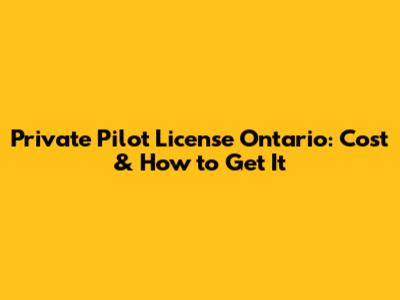 Private Pilot License Ontario: Cost & How To Get It