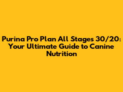 Purina Pro Plan All Stages 30/20: Your Guide