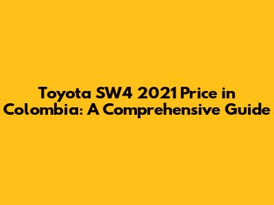 Toyota SW4 2021 Price In Colombia: A Comprehensive Guide