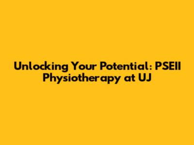 Unlocking Your Potential: PSEII Physiotherapy At UJ
