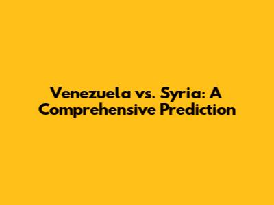 Alright, guys, let's dive into a detailed prediction for the upcoming match between Venezuela and Syria. This is not just about guessing who's going to win; we鈥檙e breaking down the key elements that could influence the game. We will be considering current form, historical data, and potential lineups to give you a well-rounded forecast. Whether you're a die-hard fan or a casual observer, this analysis will equip you with the insights you need to follow the match more closely. So, buckle up, and let's get started!